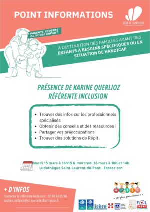 - Le salon du territoire, avec la présence d’un stand « inclusion », le 20-21-22 Mai 2022 à Saint Laurent du Pont