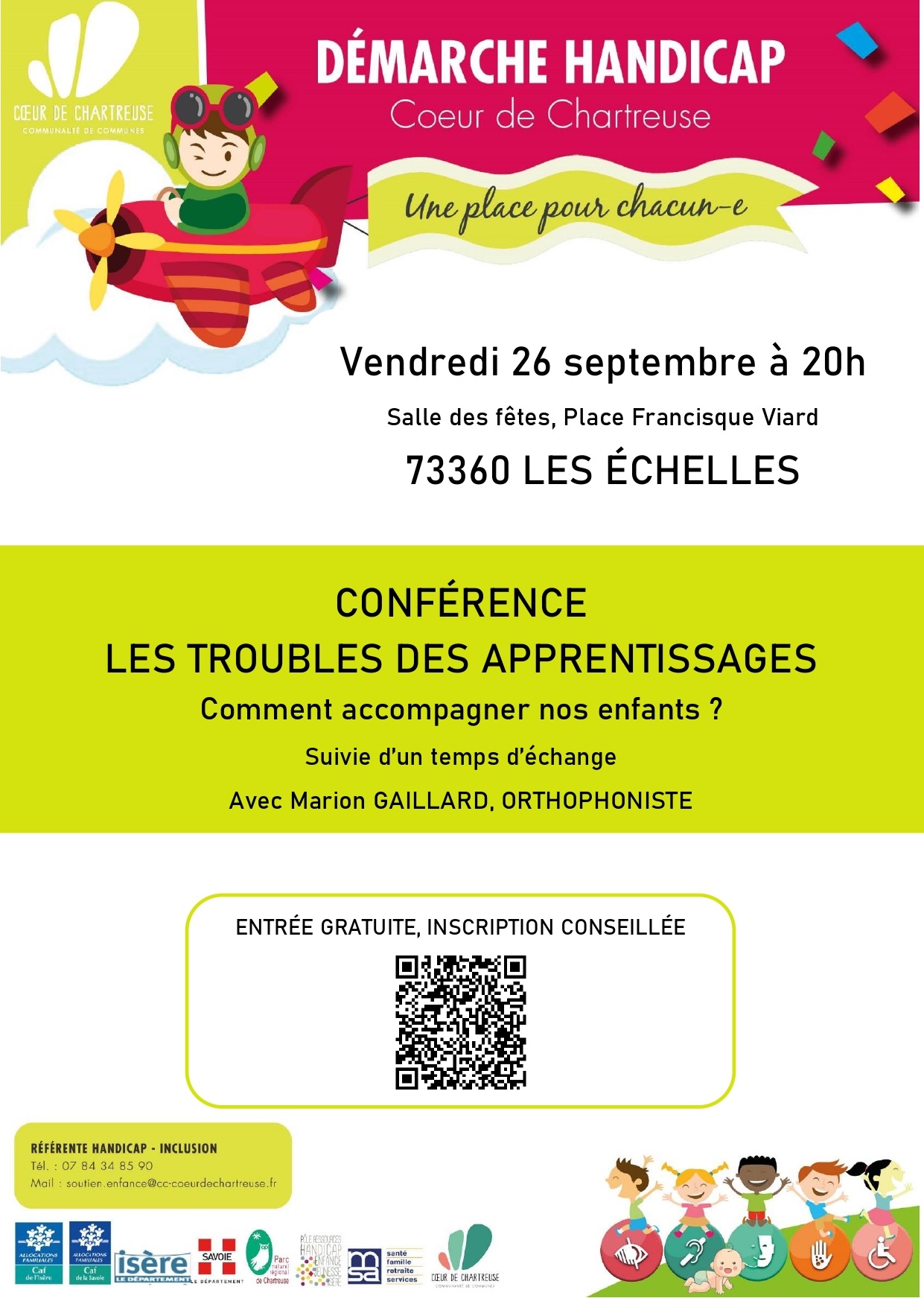- Conférence de Marion Gaillard, orthophoniste – « Les troubles des apprentissages – Comment accompagner nos enfants »