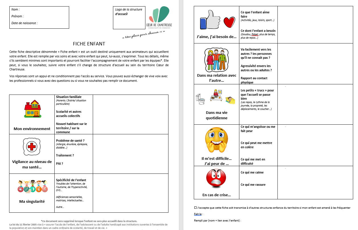 Il permet, selon un usage personnalisé par chaque famille, de faire circuler les informations nécessaires à la prise en charge des enfants.
