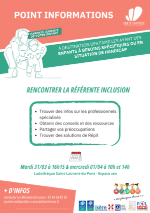 La référente Inclusion vient vous rencontrer auprès des partenaires du Territoire sur des permanences :