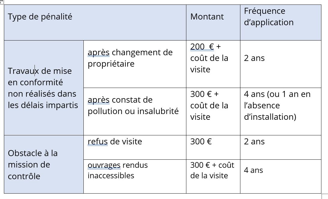 Le non-respect de la réglementation expose désormais l’usager à des pénalités, telles qu’indiquées dans le tableau suivant :
