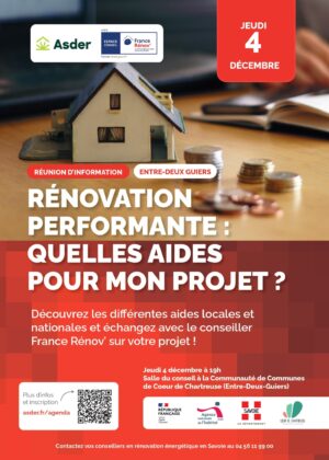 Dans le cadre de son action en faveur du Climat, la Communauté de Communes Cœur de Chartreuse avec France Rénov’, vous invite pour une web conférence le jeudi 4 décembre, de 19 h à 21 h au siège de l’intercommunalité à Entre-deux-Guiers.