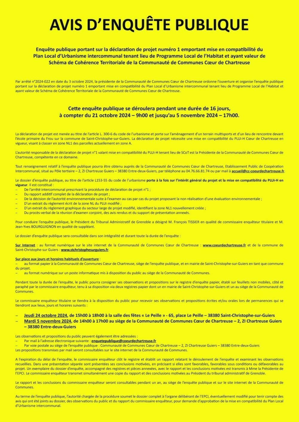 2. Dossier d’enquête publique à consulter via : https://coeurdechartreuse.fr/evolutions-du-document-durbanisme/